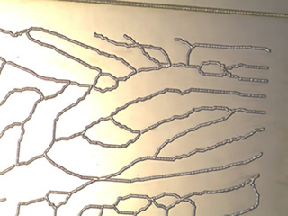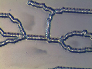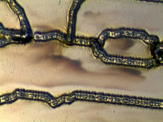 Wykorzystanie PDMS (Dow Corning, SYLGARD 184 SILICONE ELASTOMER KIT) w badaniach było umotywowane wieloma korzystnymi cechami, jakie reprezentuje sobą w/w polimer. Jest on materiałem odpowiednim do obróbki laserem CO2, pozwalającym odwzorować mikrokanały z dużą wiernością i dokładnością. Ponadto jest on transparentny w świetle widzialnym, przez co umożliwia bezpośrednią obserwację mikroprocesów oraz badania fluorescencji, czy absorbancji próbek. Dodatkową, lecz równie istotną cechą, jest to, że sieciuje się w niskich temperaturach, co znacznie ułatwia prace laboratoryjne. PDMS jest także nietoksyczny i biokompatybilny, co umożliwia np. namnażanie w nim ludzkich kultur komórkowych. Polimer ten można również łatwo formować, a także kontrolować właściwości powierzchniowe. |